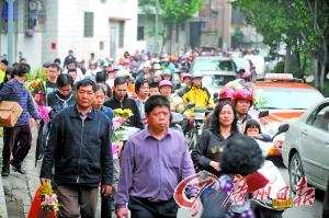 前往佛山市殯儀館拜祭的人明顯增多。記者陳楓 攝