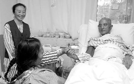 醫(yī)護(hù)人員聽(tīng)說(shuō)代吉卓瑪專(zhuān)門(mén)來(lái)看望丈夫昂文根德時(shí),趕緊幫忙打開(kāi)ICU的玻璃門(mén)。根德緊緊抓住妻子的左手,用手勢(shì)告訴卓瑪,他不能說(shuō),但能走,讓妻子不要擔(dān)心!陛喴紊系淖楷旊m然不舍,但安心了許多,之前她都是通過(guò)別人知道丈夫的情況,這次,她終于親眼見(jiàn)到了。