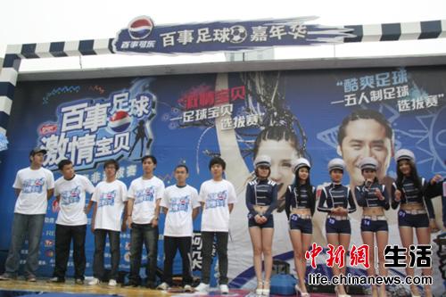 中新網(wǎng)5月17日電 近日,“百事足球,激情寶貝——走進(jìn)南非選拔賽”足球夢(mèng)之隊(duì)6強(qiáng)選手再次前往足球嘉年華,給觀眾帶來(lái)視聽新感受。雖然天空下起綿綿細(xì)雨,但還是無(wú)法澆熄大家對(duì)活動(dòng)的熱情,6強(qiáng)的球員們唱歌、跳舞、玩技巧樣樣精通,與足球?qū)氊?強(qiáng)配合也十分默契,最終通過(guò)足球知識(shí)的問(wèn)答,決選出2位最佳球員贏得了與足球?qū)氊愐黄鹎巴戏堑耐ㄐ凶C。