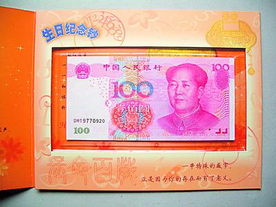 記者在淘寶網(wǎng)上搜索“生日鈔”關鍵字,出現(xiàn)了近300個搜索結果,其中浙江、上海、北京、廣州的賣家都有。記者打開一家網(wǎng)店,展示這些不同面值的紙幣,紙幣編號清晰地拍攝出來,都是可以與年月日相對應的號碼。該網(wǎng)店還特別打出廣告,“一億張紙幣中,號碼與你生日相同的只有一張,概率比中500萬元彩票還要難10倍!