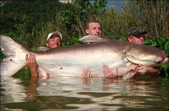 英國男子在泰國度假時捕獲一條約重90公斤的巨型鯰魚。