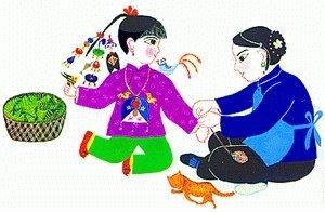 中國古代崇拜五色,以五色為吉祥色。因而,節(jié)日清晨,各家大人起床后第一件大事便是在孩子手腕、腳腕、脖子上拴五色線。系線時(shí),禁忌兒童開口說話。五色線不可任意折斷或丟棄,只能在夏季一場(chǎng)大雨或第一次洗澡時(shí),拋到河里。據(jù)說,戴五色線的兒童可以避開蛇蝎類毒蟲的傷害;扔到河里,意味著讓河水將瘟疫、疾病沖走,兒童由此可以保安康。