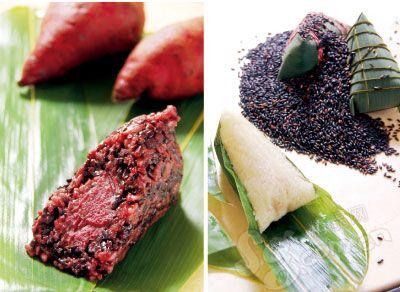 當(dāng)然,今年新款的雙紫粽子,選用了紫薯和紫米,兩者組合不僅讓粽子色澤討喜,同時也有很高的營養(yǎng)價值,紫薯含有大量維生素,又是抗癌能手,同時還有利于塑身,而紫米可以滋陰補(bǔ)腎。紫薯餡兒制作復(fù)雜,將其蒸熟搗泥翻炒制成紫番薯泥,再放于紫米、糯米中央,煮熟后,剝開綠色的粽葉,一口下去,紫薯的甜潤細(xì)膩與紫米的軟糯合二為一。