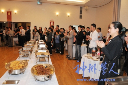 招待會(huì)上,留學(xué)人員載歌載舞表達(dá)著對(duì)祖國(guó)的祝福,每個(gè)人都沉浸在國(guó)慶佳節(jié)的氣氛中,大家品嘗著美味佳肴,談?wù)撝鎳?guó)的發(fā)展變化,構(gòu)思著自己的美好未來。祖國(guó)的明天更美好——這是大家共同的心愿。