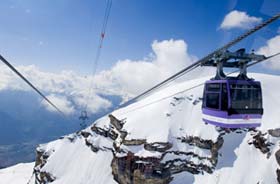 我總有點(diǎn)狹隘地認(rèn)為外國人都有點(diǎn)“似乎瘋狂”,一逮著點(diǎn)時(shí)間就去登山、滑雪。從山下徒步登上山頂?shù)倪@股累暫且不提,爬上山后再從高高的懸崖跳下去,炫自己的滑雪技術(shù)的這股勇氣真是可歌可泣,像我這樣缺少膽量的人自然是不能做此類瘋狂之事,可是面對(duì)皚皚白雪和巍巍高山總是心有不甘,而連接雪山的纜車則正好可以滿足我不費(fèi)吹灰之力也可飽覽群山的愿望。