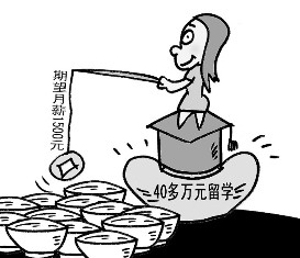 海歸低薪求職敲響了盲目留學(xué)的警鐘,對(duì)此,學(xué)生和家長一定要有充分和清醒的認(rèn)識(shí)。(何勇 唐春成/漫畫)