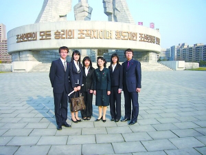 田明房間的朝鮮大學(xué)生是金亨稷師范大學(xué)大四學(xué)生。由于朝鮮的男子都要服10年兵役,所以他們上大學(xué)一般都30歲左右了。這位朝鮮大學(xué)生會大致留意一下留學(xué)生們的日常生活,但絕對不像某些傳言那樣監(jiān)視留學(xué)生的日常行動。他十分熱情地幫助留學(xué)生學(xué)習(xí)朝鮮語,跟所有留學(xué)生都是朋友。