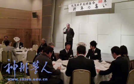 2010年1月16日,札幌市內(nèi)銀裝素裹。受札幌日中友好協(xié)會(huì)邀請(qǐng),北海道中國學(xué)友會(huì)會(huì)長(zhǎng)黨志勝、副會(huì)長(zhǎng)宋寧、石光及干事長(zhǎng)、副干事長(zhǎng)共六人代表留學(xué)生參加了在札幌舉辦的新年懇請(qǐng)會(huì)。參加這次新年會(huì)的還有中國駐札幌總領(lǐng)館徐愛平領(lǐng)事、札幌大學(xué)孔子學(xué)院學(xué)院長(zhǎng)張偉雄、北海道日中友好協(xié)會(huì)、北海道華僑華人連合會(huì)、小樽日中友好協(xié)會(huì)、惠庭日中友好協(xié)會(huì)、日中交流の會(huì)、北海道后生勞動(dòng)省北海道勞動(dòng)局、晉南貿(mào)易(株)代表取締役等民間團(tuán)體和企業(yè)代表60余人。