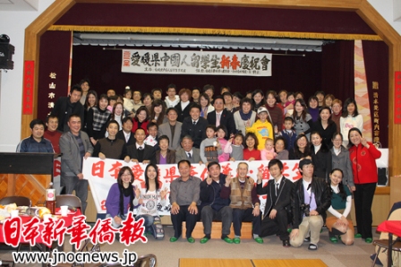 在愛媛大學(xué)和松山大學(xué)的大學(xué)學(xué)習(xí)的中國留學(xué)生和他們的家屬、愛媛縣華僑華人聯(lián)合會部分會員以及愛媛縣日中友好協(xié)會、松山市鵲會的日本友人共百余人參加了慶祝會。