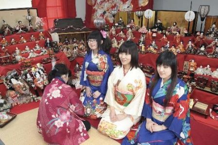 李勁在長崎大學(xué)生產(chǎn)科學(xué)系讀研究生,3月2日,她和其他十二名在長崎大學(xué)的中國留學(xué)生一起來到位于長崎市本石灰町的大崎神社,參加當(dāng)?shù)厣鐖F組織的交流活動。在這里,她們參觀了日本風(fēng)格的玩偶并試穿和服,第一次在日本體驗女兒節(jié)的感受。