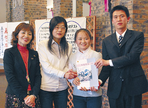 中新網3月5日電 據《日本新華僑報》報道,3月3日,日本和歌山縣“和歌山西輪轉俱樂部”在Laffina禮堂為即將畢業(yè)的留學生舉行了“畢業(yè)紀念相冊”贈送儀式!昂透枭轿鬏嗈D俱樂部”的國際服務委員會的主井知子委員長親手將“紀念相冊”交給了中國留學生鄭秋杰(26歲),金香梅(24歲)和代向斐(23歲)。據悉,該紀念相冊是和歌山縣專門為和歌山大學的留學生們制作的。