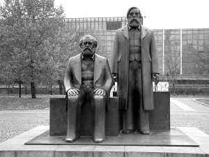 馬恩銅像雕塑,始建于上世紀(jì)七十年代的東德時(shí)期。據(jù)說(shuō),關(guān)于馬克思坐著而恩格斯站著的造型構(gòu)思,有兩種解釋,一是馬克思是德國(guó)人而恩格斯不是德國(guó)人,二是恩格斯是馬克思的戰(zhàn)友和學(xué)生。