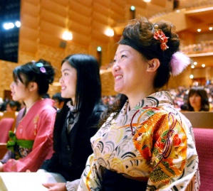 當(dāng)天畢業(yè)的有,經(jīng)濟(jì)學(xué)系的454人和研究生院經(jīng)濟(jì)學(xué)研究科的20人。侯利娟身著和服,與日本同學(xué)一起坐在最前排,以一種神圣的心情,注視著代表所有畢業(yè)生從校長那里接受學(xué)位的學(xué)生總代表的一舉一動。傾聽著主席臺上傳來的畢業(yè)賀詞,她更加感受到“不能忘記那些一直幫助自己的當(dāng)?shù)厝恕薄?/p>