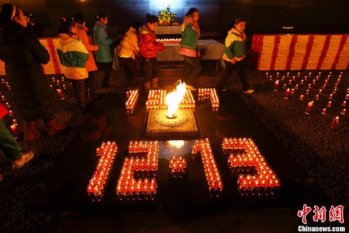 南京師生代表共為南京大屠殺遇難同胞秉燭守靈。