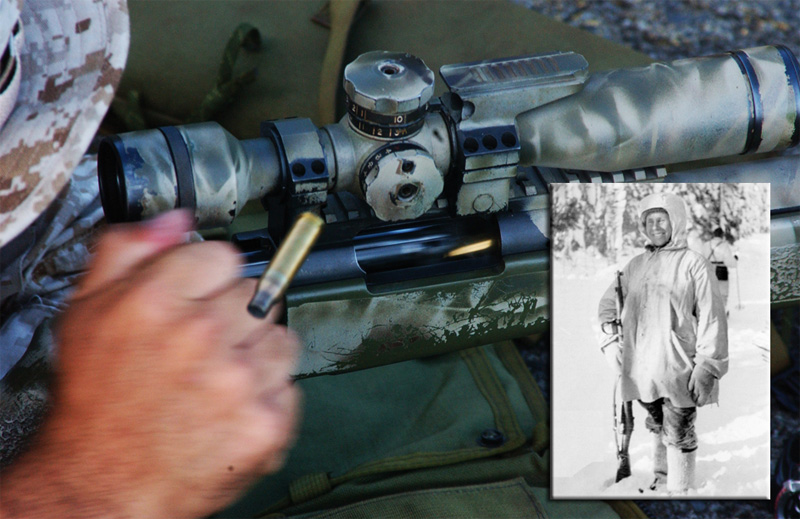 西蒙·海耶在攝氏零下20-40度的環(huán)境,身穿全白迷彩裝,狙殺蘇軍。在戰(zhàn)爭(zhēng)中被確認(rèn)擊斃的紅軍人員共有505人是出自于他之手。另有非官方的統(tǒng)計(jì)指出他的戰(zhàn)果為542人。除此之外,他用沖鋒槍也殺害了近200人,所使用的是M-31SMG。也因此將他的殺敵數(shù)提升到705人。這是在他受傷前100天內(nèi)所締造出來(lái)的驚人數(shù)目,平均一天殺敵超過(guò)5人。由于芬蘭的冬天早上時(shí)間較短,因此也可以說(shuō)他在有日光時(shí)每小時(shí)狙殺一名敵軍。