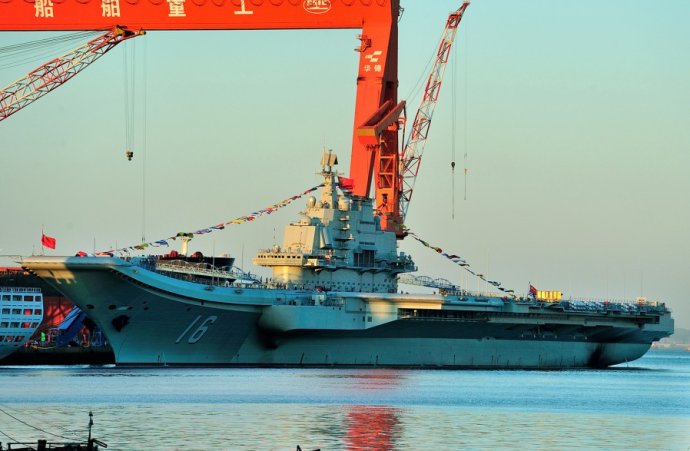 “遼寧艦”節(jié)日期間霓虹燈閃亮裝點(diǎn)海灣
