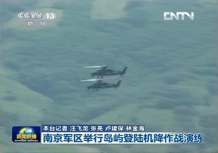 近期,日本“購(gòu)島”行徑引發(fā)釣魚(yú)島問(wèn)題持續(xù)火熱。2012年10月15日的中央電視臺(tái)新聞聯(lián)播節(jié)目,播出了南京軍區(qū)舉行島嶼登陸機(jī)降作戰(zhàn)演練的視頻,這段視頻持續(xù)1分多鐘,顯示演練場(chǎng)面火爆,南京軍區(qū)出動(dòng)了登陸艦、大批火炮、米-17、直-9WZ等裝備,引人注意的是,網(wǎng)絡(luò)上軍迷極其關(guān)注并熱切期待的武直-10攻擊直升機(jī),出現(xiàn)在視頻當(dāng)中,視頻顯示,武直-10發(fā)射火箭彈發(fā)起攻擊。(來(lái)源:環(huán)球網(wǎng))