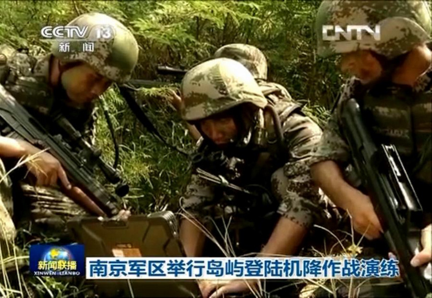 參加演習(xí)的士兵利用電腦終端獲取戰(zhàn)場(chǎng)情報(bào)