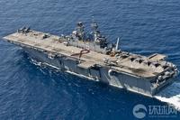 在此次美菲聯(lián)合登陸演習(xí)中,一架AV-8B鷂式戰(zhàn)斗機(jī)從好人理查德號(hào)兩棲攻擊艦上起飛。