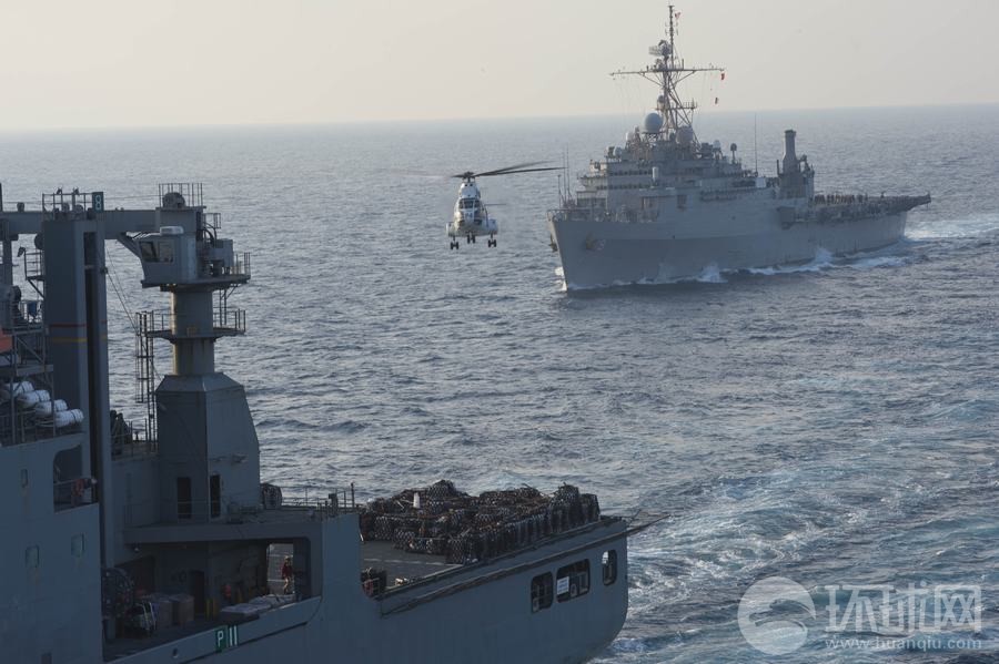 演習(xí)中美軍補(bǔ)給艦演練海上垂直補(bǔ)給
