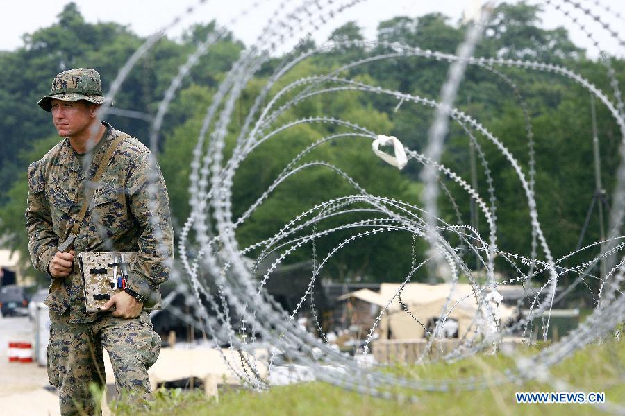 美菲兩棲聯(lián)合軍演第二天,當(dāng)天來自美國(guó)兩極攻擊艦“好人理查德”號(hào)上的約120名美國(guó)海軍陸戰(zhàn)隊(duì)員和約30名菲律賓海軍陸戰(zhàn)隊(duì)員來到了菲律賓塔拉省的烏鴉峽谷,參加直升機(jī)突襲項(xiàng)目的演習(xí)。