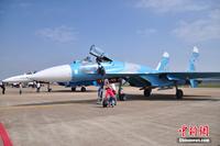 中新網(wǎng)珠海11月11日電(陳海峰) 11日中午12點25分,“俄羅斯勇士”特技飛行表演隊在闊別6年之后,再次來到珠海航展。俄羅斯這次一共派出5架蘇27來到珠海,將在航展上進(jìn)行飛行表演與靜態(tài)展示。