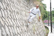 武僧徒手登5米高墻