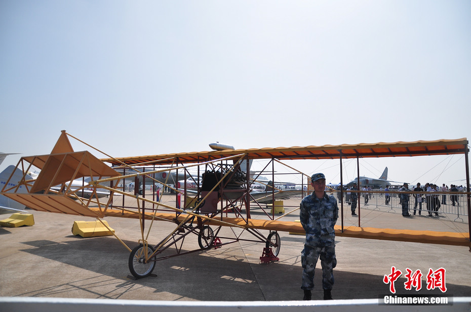 馮如2號飛機是中國人自行設(shè)計、制造并成功試飛的第一架飛機。該機于1911年1月18日由“中國航空之父”--馮如試飛成功。航展上展出的為1:1復(fù)制品。陳海峰 攝