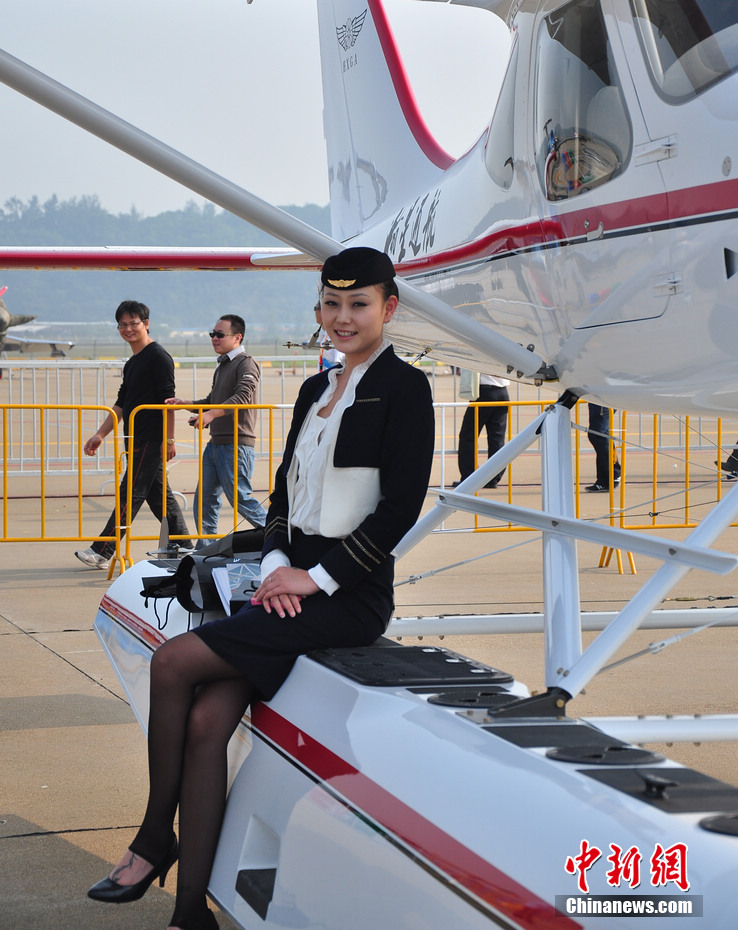 每一屆珠海航展都會有許多佳麗現(xiàn)身,而這次航展上的直升機模特更是讓觀眾大飽眼福。陳海峰 攝