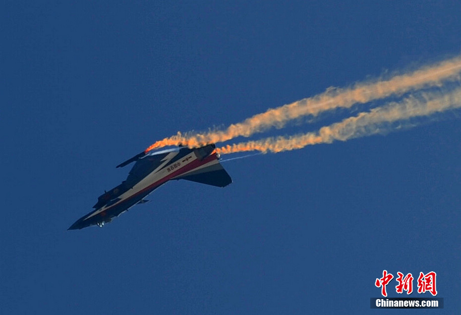 中新網(wǎng)珠海11月14日電(陳海峰) 第九屆珠海航展于昨日上午開幕。隨后,中國空軍八一飛行表演隊(duì)進(jìn)行飛行表演,上演了“向上開花”、“雙機(jī)對沖”、“小半徑轉(zhuǎn)圈”等精彩動作。記者曾多次觀看過八一飛行表演隊(duì)的表演,而這次是最精彩的一次!