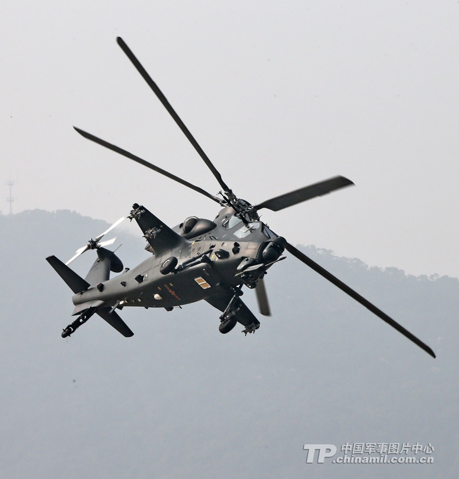 11月13日,我國自主研制生產(chǎn)的武直-10武裝直升機亮相在珠海舉行的第九屆中國國際航空航天博覽會,在飛行表演中展示了這款直升機的優(yōu)良性能。圖為武直-10側旋。記者喬天富 攝