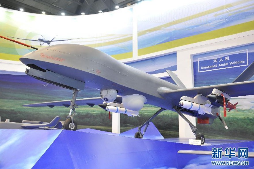 這是珠海航展上展出的彩虹4(CH-4)無人機系統(tǒng)(11月14日攝)。新華社記者 梁旭 攝