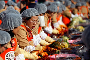 首爾兩千余人齊做泡菜