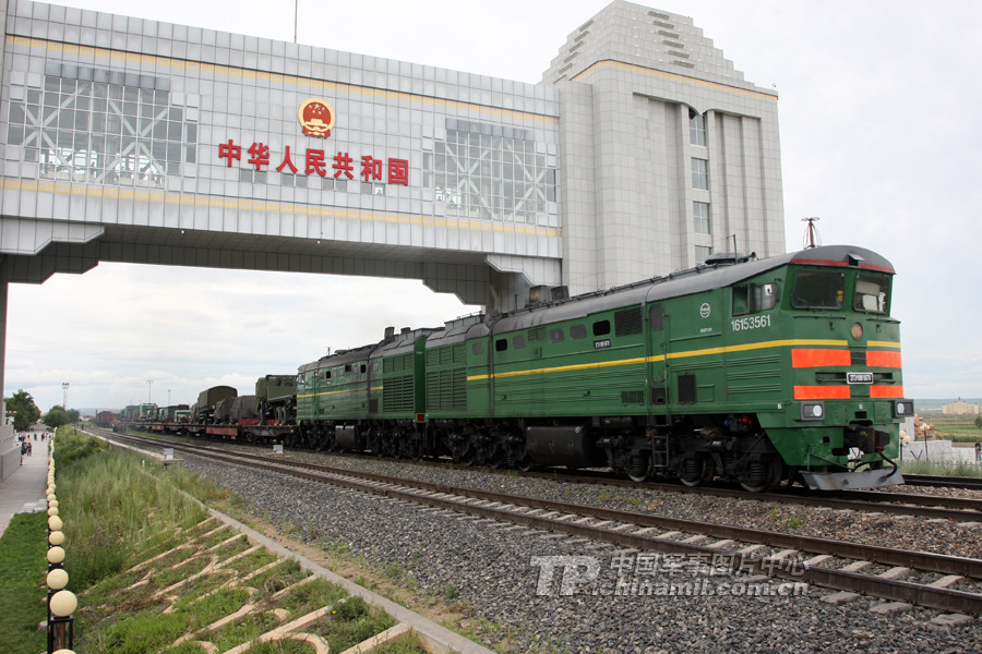 參加“和平使命—2013”中俄聯(lián)合反恐軍事演習(xí)第一列地轉(zhuǎn)專(zhuān)列開(kāi)出國(guó)門(mén)。曹占禮 攝