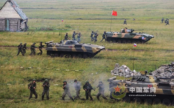中俄雙方參戰(zhàn)官兵協(xié)同作戰(zhàn)攻入帕什納鎮(zhèn)