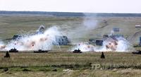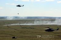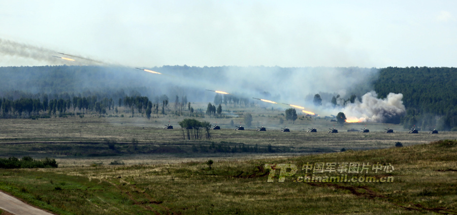 8月12日,“和平使命-2013”聯(lián)合反恐軍演中俄兩軍參演部隊(duì),在切巴爾庫(kù)爾合同訓(xùn)練場(chǎng)舉行全員全要素實(shí)兵協(xié)同訓(xùn)練。雙方共出動(dòng)官兵近900人,坦克、步戰(zhàn)車、直升機(jī)等武器裝備約130臺(tái)。(來(lái)源:中國(guó)軍網(wǎng))