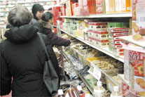 中新網(wǎng)1月13日電 距離羊年春節(jié)還有10多天,紐約華埠的各大小超級市場、海味店、禮品店已紛紛推出應節(jié)物品。雖然經(jīng)濟持續(xù)不景氣,但華人對于春節(jié)是不可不過的,因此春節(jié)購物潮已經(jīng)開始。