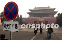 一月十五日,北京故宮神武門廣場豎起禁止停車的交通標(biāo)志牌。為恢復(fù)紫禁城周邊凝重幽靜的歷史原貌,故宮博物院決定從當(dāng)天開始廢止神武門外停車場。作者:張煒