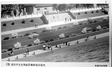 在規(guī)劃中,大多數(shù)地段的堤岸斷面結(jié)構(gòu)形式均為退臺(tái)式護(hù)岸,以體現(xiàn)親水性;個(gè)別地段因條件所限堤岸線無法向后退移的,如凱悅飯店、移通大廈附近,則仍采用直立式護(hù)岸。