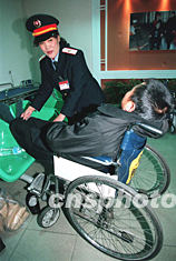 北京站在春運(yùn)期間,開(kāi)辟了全國(guó)第一家敬老助殘候車(chē)室,免費(fèi)幫助老弱病殘旅客乘車(chē)。