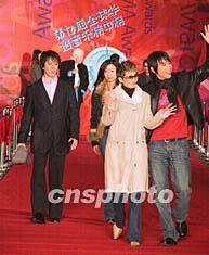 在今晚的頒獎典禮上,日本歌星濱崎步,港臺藝人梁朝偉、梅艷芳、周華健、伍佰,內(nèi)地歌星孫楠、田震、劉歡等走過大紅地毯鋪就的星光大道進入主會場,引得圍觀的滬上歌迷、影迷們尖叫連連。