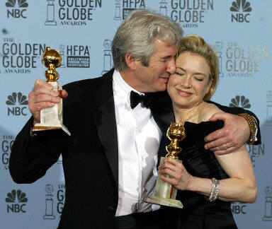 在二零零一年以《真愛(ài)來(lái)找碴》勇奪金球獎(jiǎng)的蕾妮齊薇格,這次再度以《芝加哥》抱走她演藝生涯中第二座金球獎(jiǎng)音樂(lè)或喜劇類最佳女主角獎(jiǎng)。與她一起獲得提名的凱薩琳澤塔瓊斯雖然未能獲獎(jiǎng),卻在臺(tái)下給予蕾妮齊薇格熱烈掌聲。