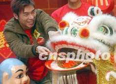 香港歌手許志安一月二十日出席“麥當(dāng)勞TM新年開(kāi)心成雙”醒獅點(diǎn)睛儀式。錢興強(qiáng) 攝
