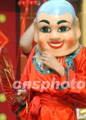 香港麥當(dāng)勞一月二十日在銅鑼灣時(shí)代廣場(chǎng)舉行“麥當(dāng)勞TM新年開(kāi)心成雙”活動(dòng)。圖為“大頭娃娃”賀新春。錢興強(qiáng) 攝