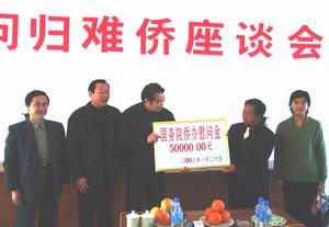 座談會(huì)上,許又聲副主任還代表國(guó)務(wù)院僑辦向平遠(yuǎn)華僑農(nóng)場(chǎng)贈(zèng)送了五萬(wàn)元人民幣慰問金。
