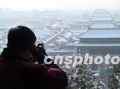 昨夜北京普降瑞雪,引得攝影愛好者們紛紛登上景山,拍攝故宮雪景。作者:杜洋