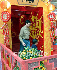 香港一對父女,周日在愉景新城電動爆竹廊中玩樂,感受新年熱鬧氣氛。洪少葵 攝