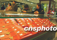 受國際黃金價(jià)格連創(chuàng)新高影響,近日,鄭州各商場(chǎng)的黃金首飾價(jià)格又攀新高,不少柜臺(tái)都標(biāo)到了每克128元,創(chuàng)出幾年未見的高價(jià)格。馬健 攝