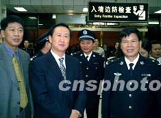 自元月二十七日零時(shí)起,深圳皇崗與香港落馬洲口岸二十四小時(shí)旅客通關(guān)正式運(yùn)作,深圳市常務(wù)副市長李德成(左二)午夜零時(shí)親臨皇崗口岸查看通關(guān)情況。作者:陳文