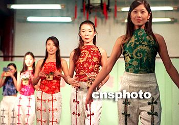 圖:模特在北京春節(jié)廟會上展示"中國結"時裝